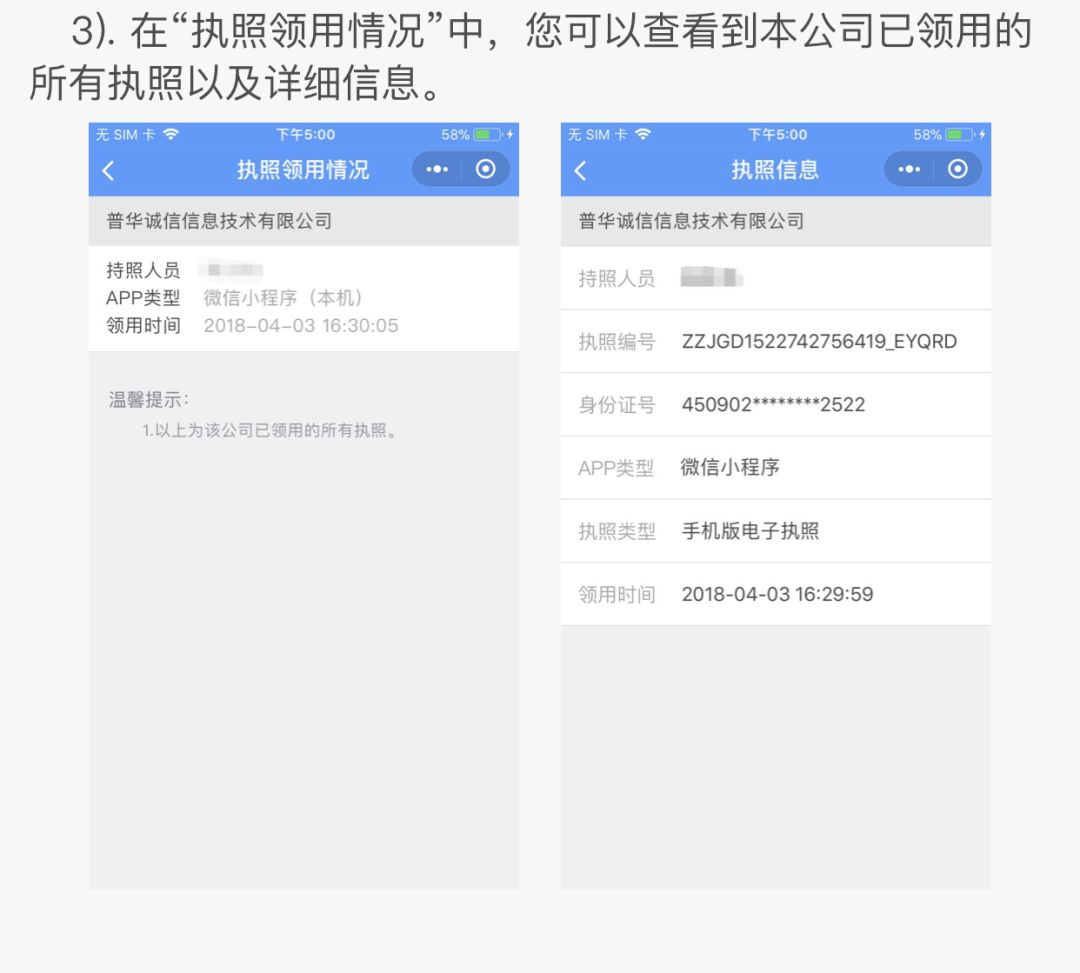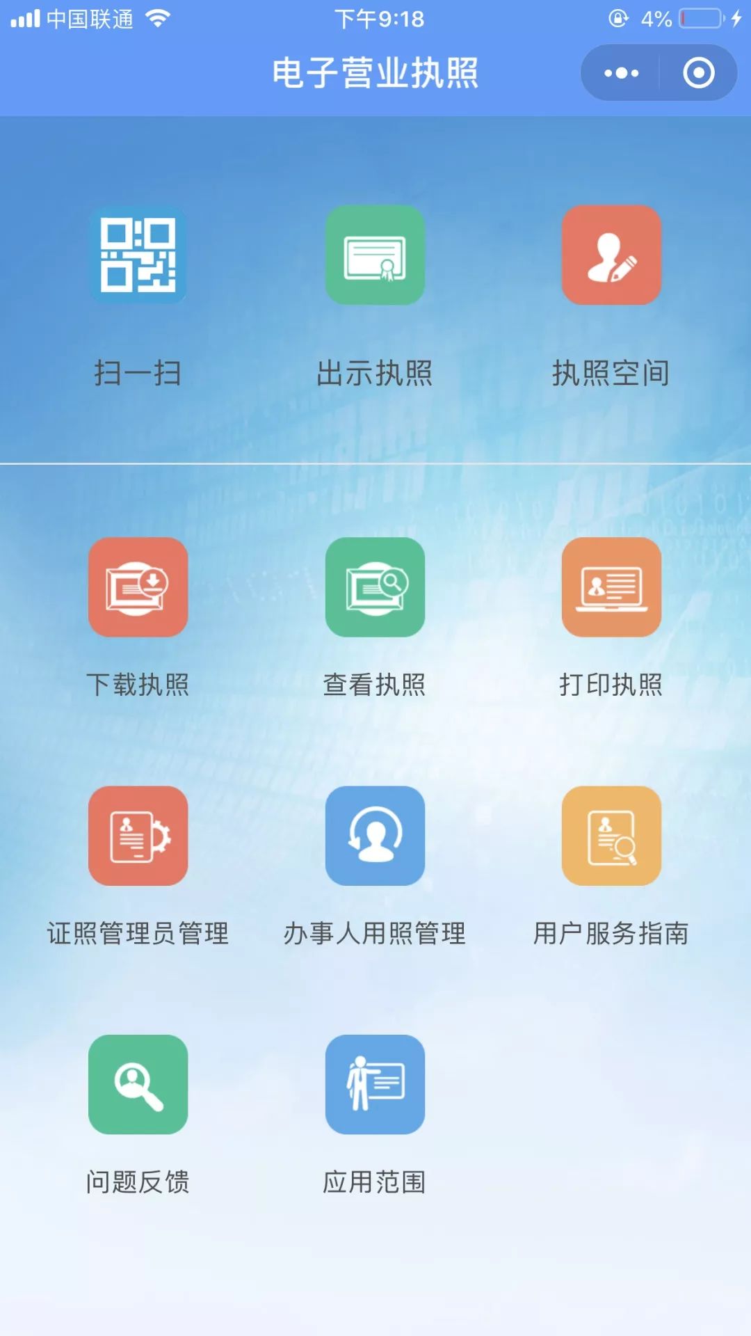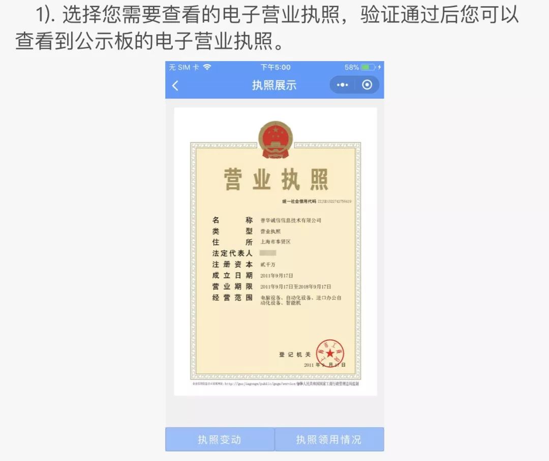 这就是微信电子营业执照小程序的界面了。