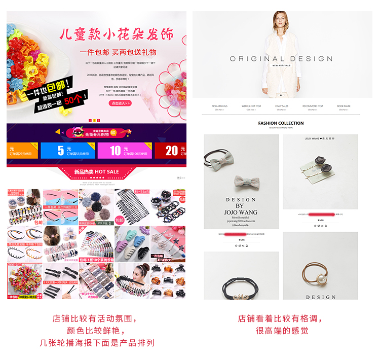 以上就是一家饰品店铺的首页设计,是不是觉得很简单也不难的呢,一些新手美工或者小白美工都可以做的呢,不管做海报还是做首页,一定要在做图之前沟通好,这样会减少返工,同样多多参考和观察其他店铺,也能给我们的设计增加很多新的想法哦~